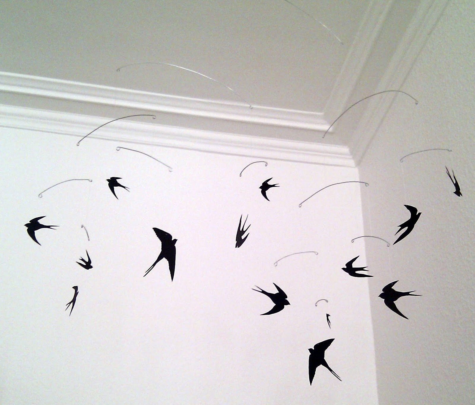 Jeg har fået et svale-uro i gave. Synes det var så fint. Men så udviklede jeg det videre også til vægpynt ved min datters tremmeseng: