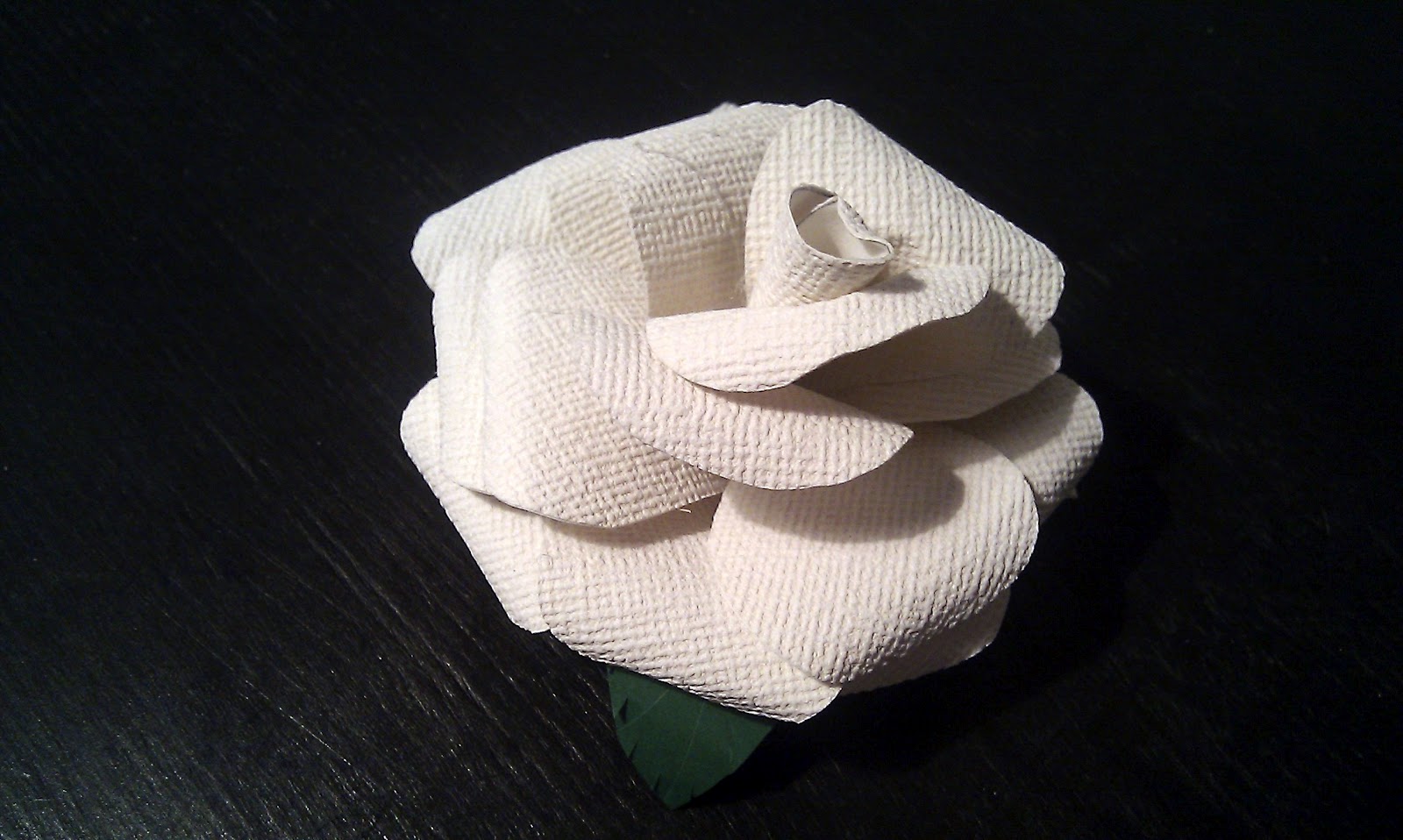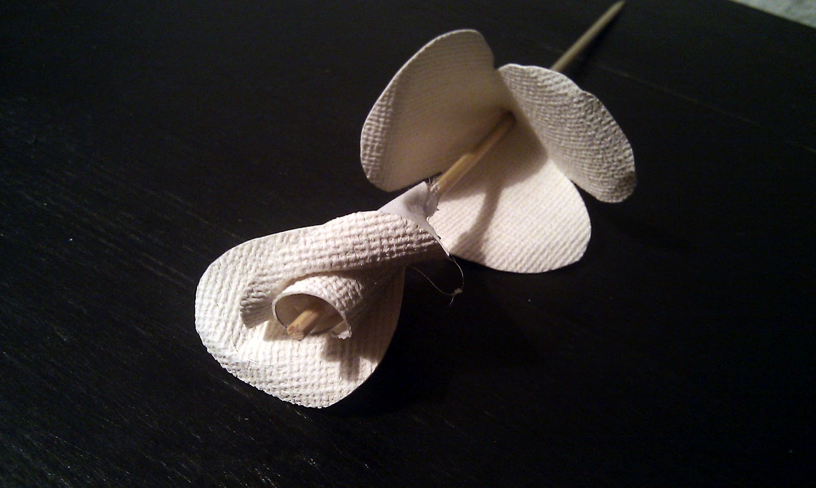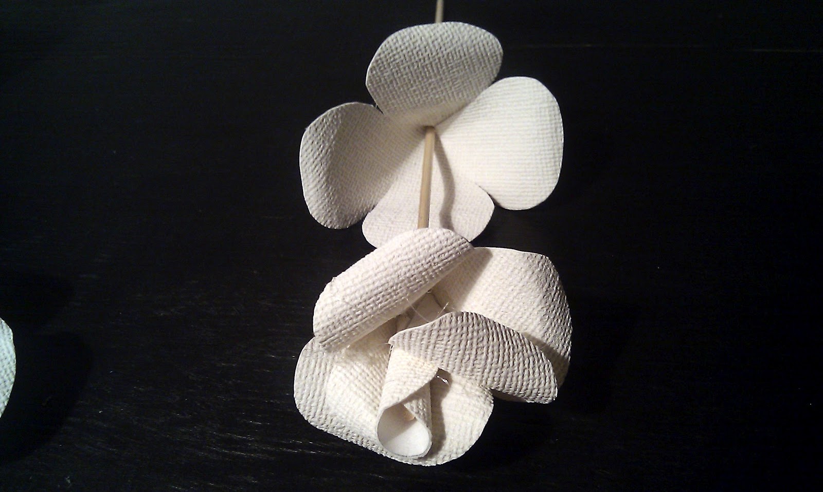 The final petals are added. Next are the leaves for the flower. I made them out of paperboard.