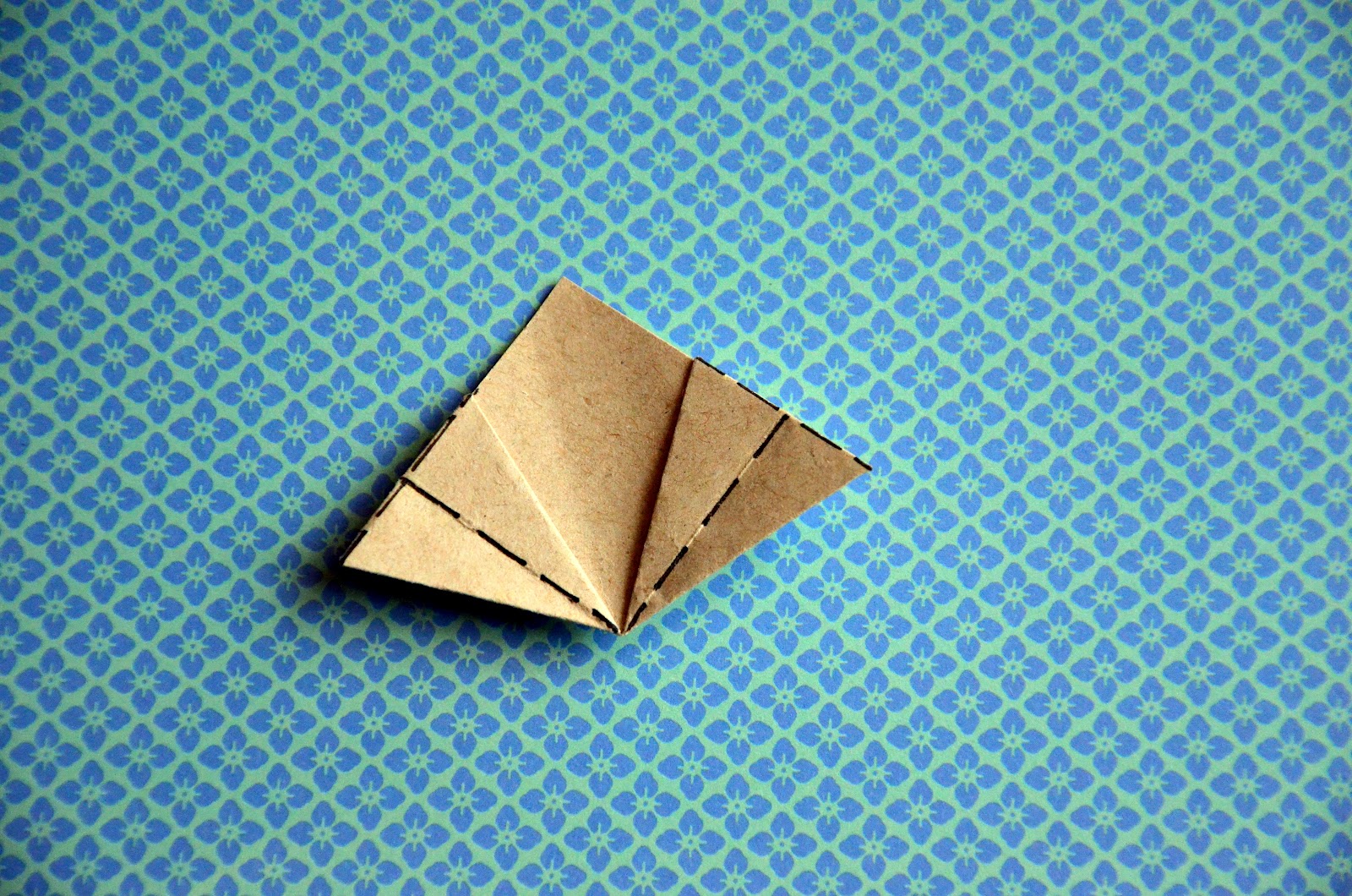 Set fra forsiden. Fold trekanterne som vist på billedet nedenunder.