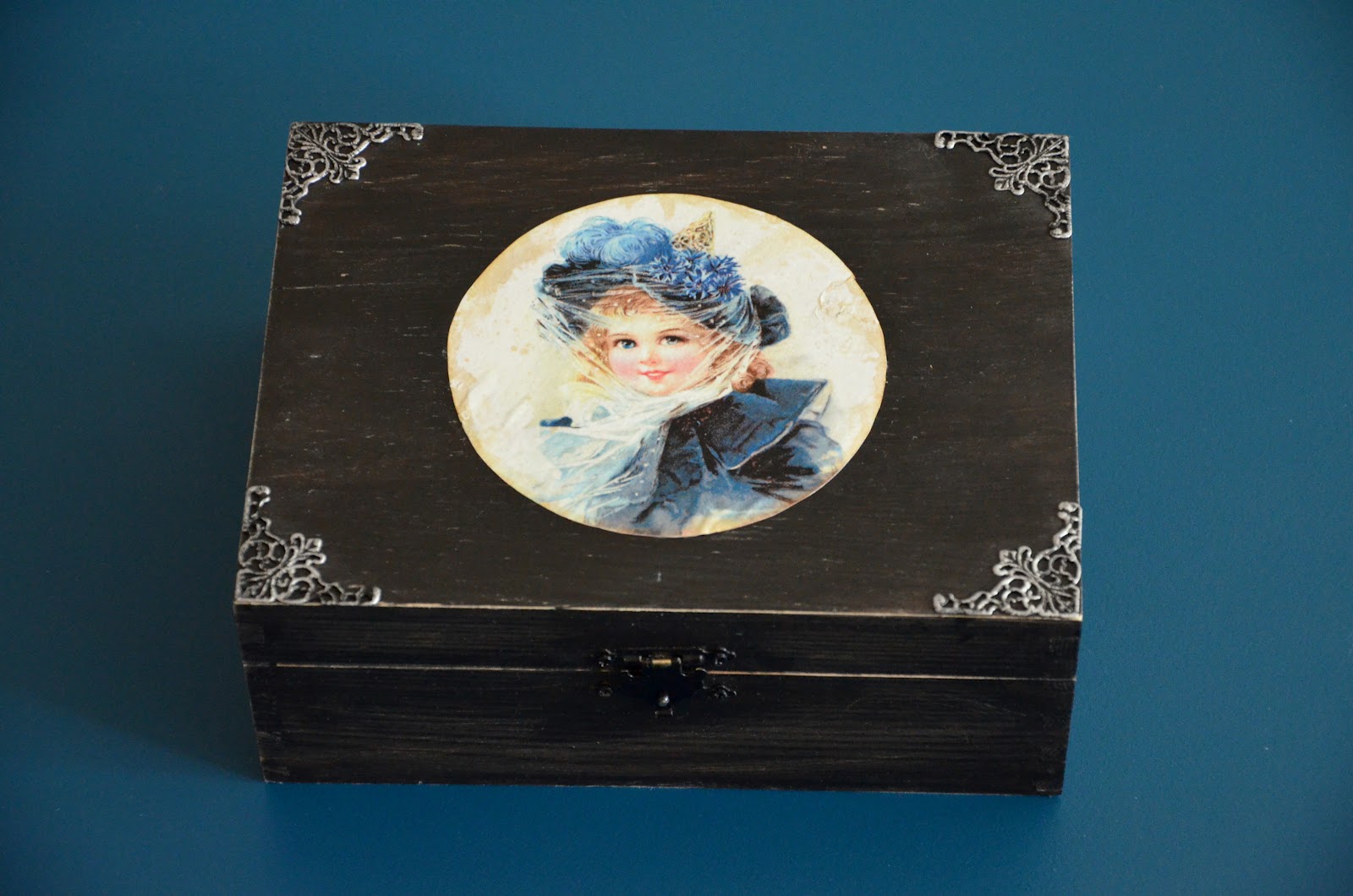 Yesterday I found the box again, and glues metal corners and a copy of an old picture I got from my grand parents.