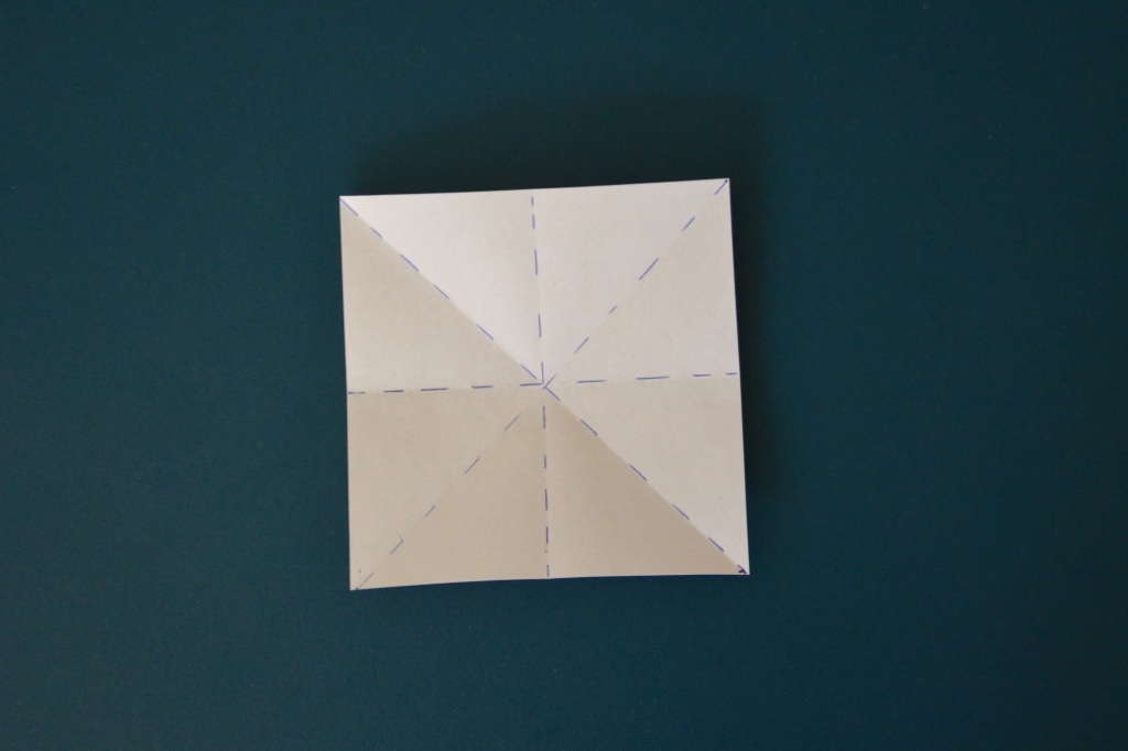 Unfold the paper, I have marked the creases you should have obtained by folding the paper like described like above.