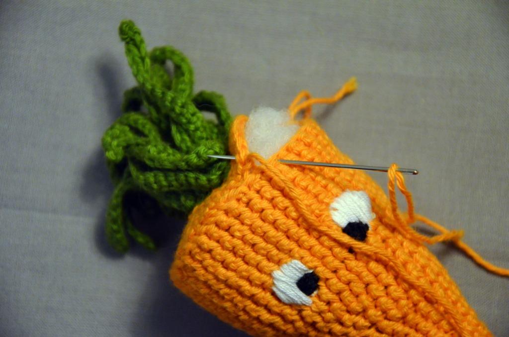 I have filled the carrot with batting. Could not quite decide myself whether it should have mouth or not. As seen in the bottom picture ended up on getting a foot.