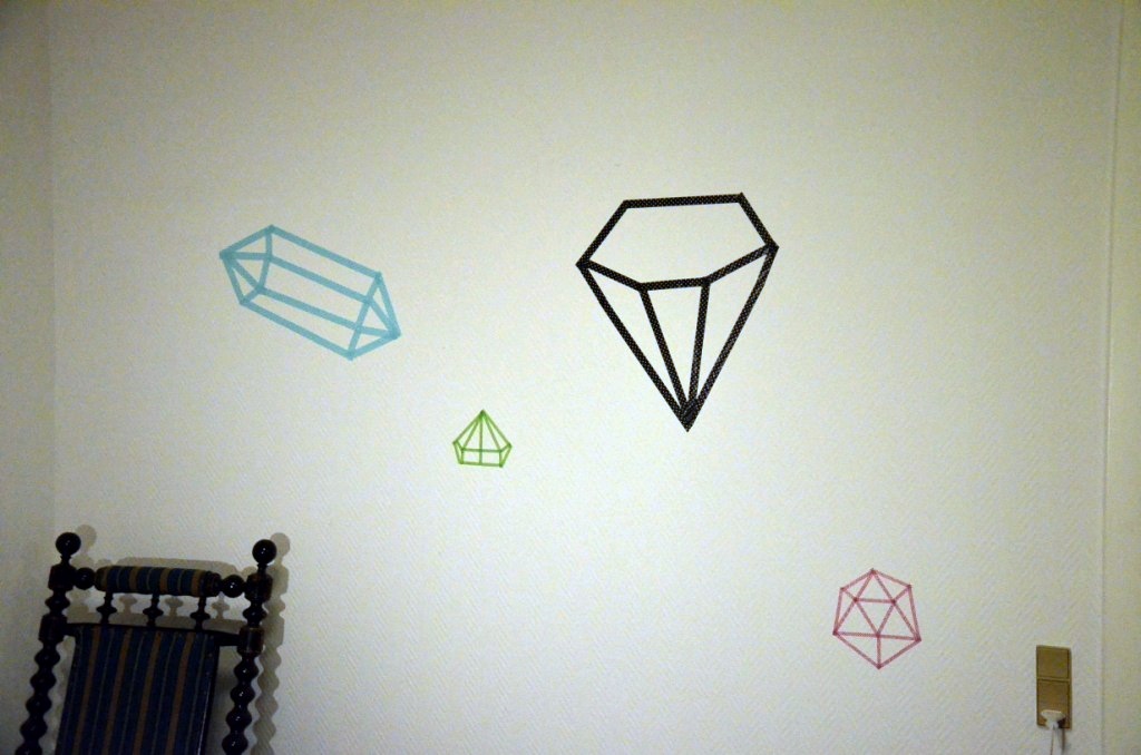 Har leget lidt med min maskingtape hjemme hos min mor. Hun havde en hel væg hvor der ikke var noget på. Det kan man ikke lige sige om de vægge vi har herhjemme. Så jeg fik frie hænder til at dekorere væggen. Jeg fandt inspirationen her for nogle måneder siden