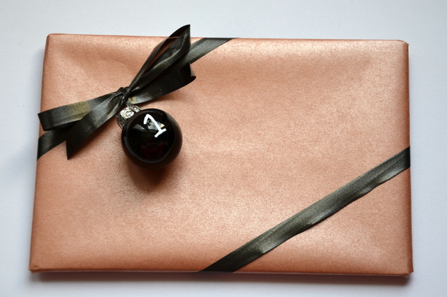 The plate couldn’t be in one of the bags, so I wrapped it and added a small Christmas ball and wrote 1 on it with a 1 mm Posca pen..