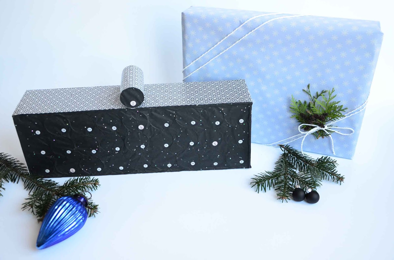 Placer toiletrullerne op som du gerne vil have dem til at være i julekalenderen. Mål derefter op, hvor meget de fylder. Hvis jeg havde været vågen, da jeg lavede min kasse, så skulle den have været H 10,5 B 15 L 40 cm, så den passede til 24 ruller.