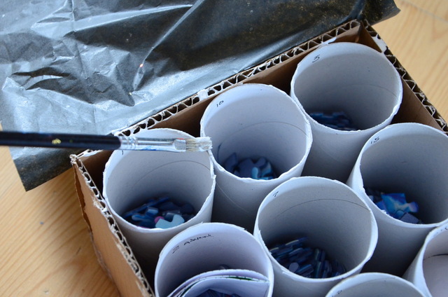 Jeg har skrevet dato på indersiden af rørene, da der ikke var det samme i alle rør, lagde også sedler med små noter i nogle af rørene. Ellers er det bare med at fylde i, hvad du nu synes kunne være sjovt.